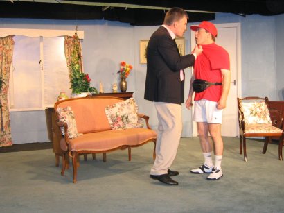 Fly in the Ointmentby Derek BenfieldMay 12, 13, 14, 2005 Directed by Don Hussey Produced by Peter Unsworth. Stage Manager, Geoff Stretton Lighting by Charlie Manton Scenery by Judith Watson and Sue McRoberts Farcical carryings-on in a seaside bungalow. Minister for the Environment, Ron Corley , seeks to disentangle himself from his former mistress, Donna, and to retrieve some damning photographs. Alas, his efforts are foiled by the arrival of his wife, Louise, and the unexpected appearances of a frustrated policewoman, a troublesome pizza delivery boy and a love-sick doctor. |